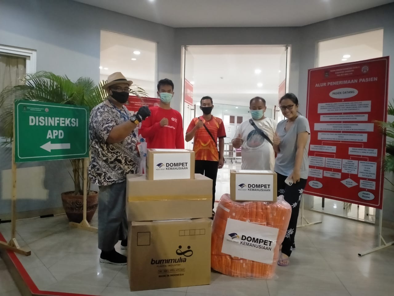 Paket bantuan APD untuk Rumah Singgah Karantina Covid 19, Tanggerang, meliputi: Hazmat (100 pcs) Apron Plastik (250 pcs) Masker (10 pcs) Gloves (20 box) Face Shield (20 pcs) Goggles Kacamata (20 pcs)